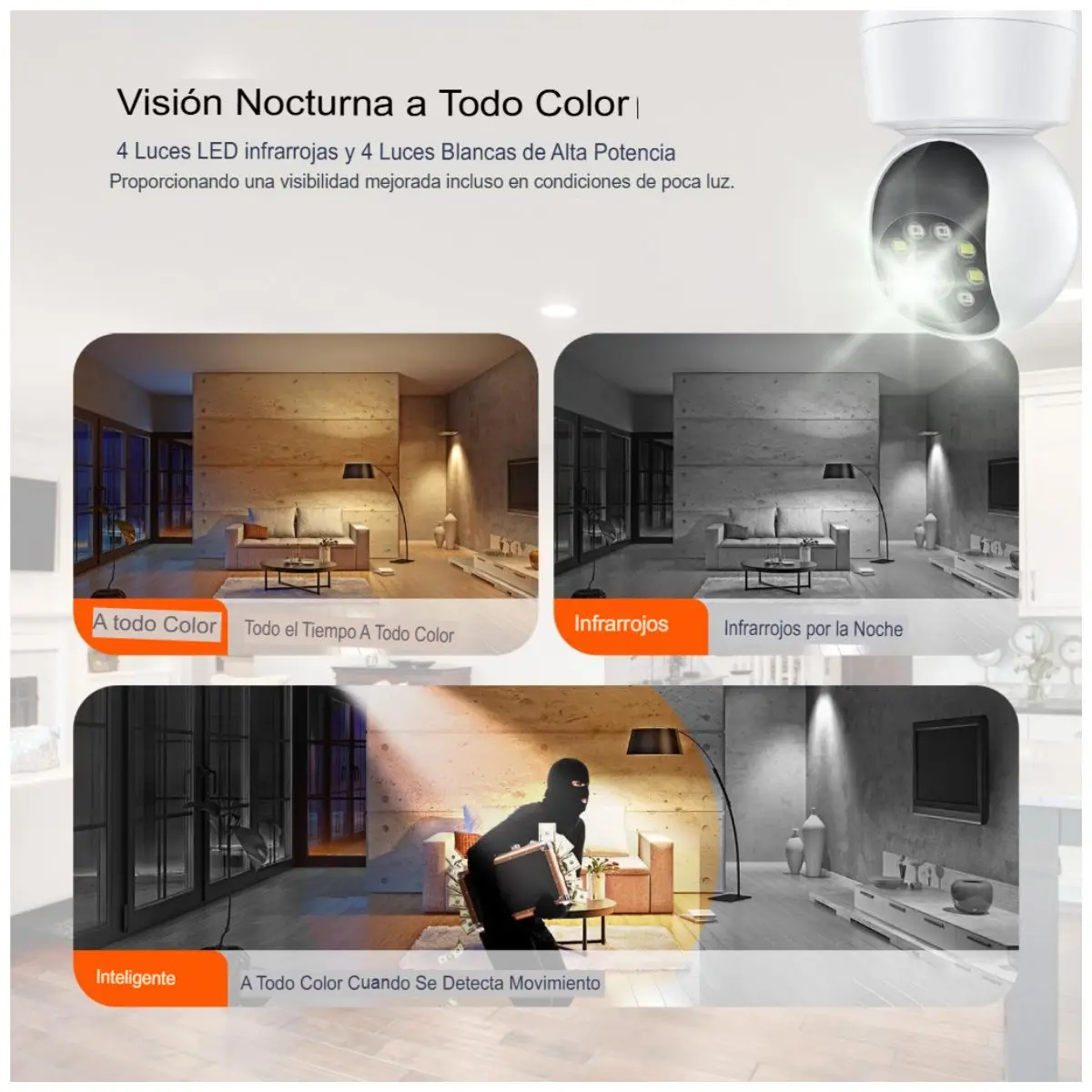 - Cobertura Total: La cámara con giro de 180 grados abarca cada rincón de tu hogar, oficina o negocio, garantizando la máxima seguridad.