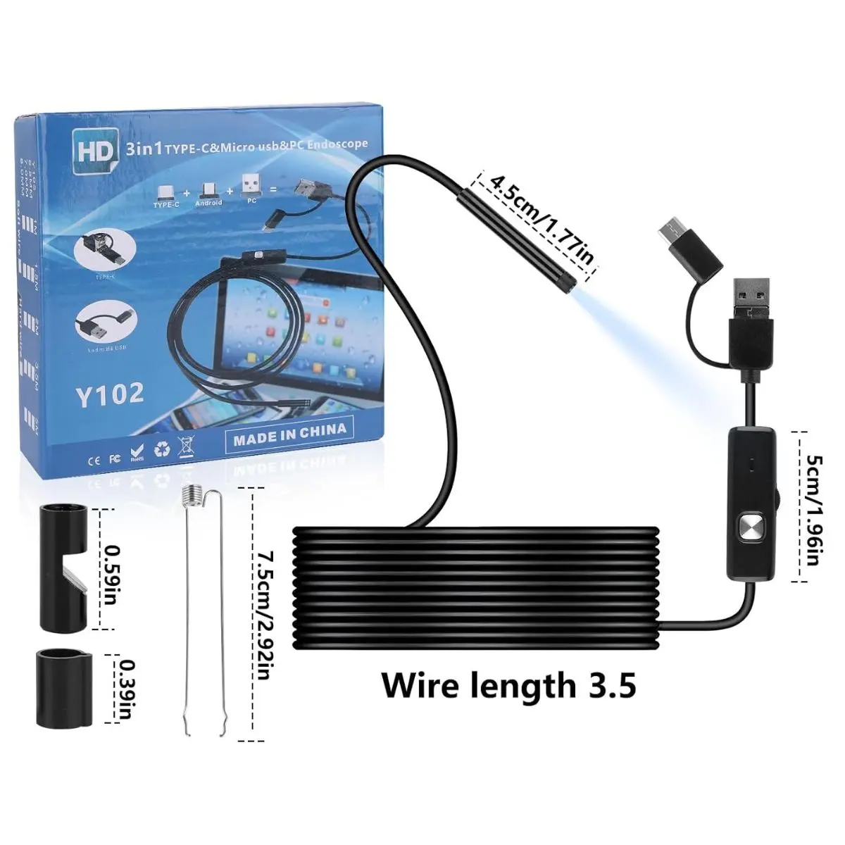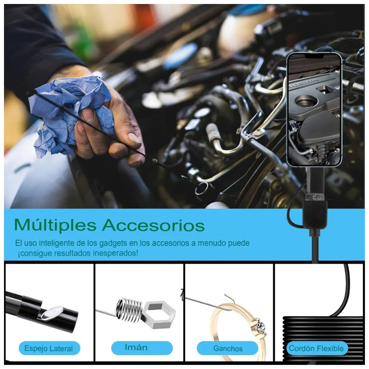 ¡Inspecciona hasta los rincones más inaccesibles con claridad! Esta Cámara Endoscopio USB Triple Interfaz 2M combina tecnología de imagen nítida con una compatibilidad universal inigualable. Gracias a su interfaz tres en uno, puedes conectarla directamente a tu celular Android o a cualquier PC, facilitando la visualización y grabación al instante.