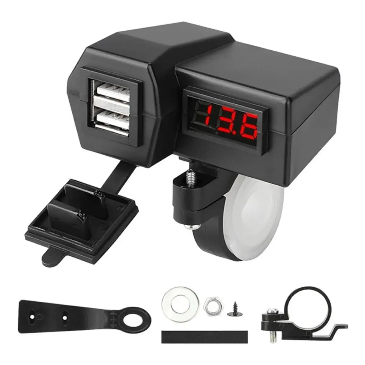 Mantente conectado, con energía en la carretera. Este accesorio Cargador USB Doble / Voltímetro de Moto está diseñado específicamente para motocicletas y bicicletas eléctricas, ofreciendo una toma de carga USB, cuenta con un voltímetro. Su construcción robusta, tiene una tapa de silicona garantizan su durabilidad en exteriores.