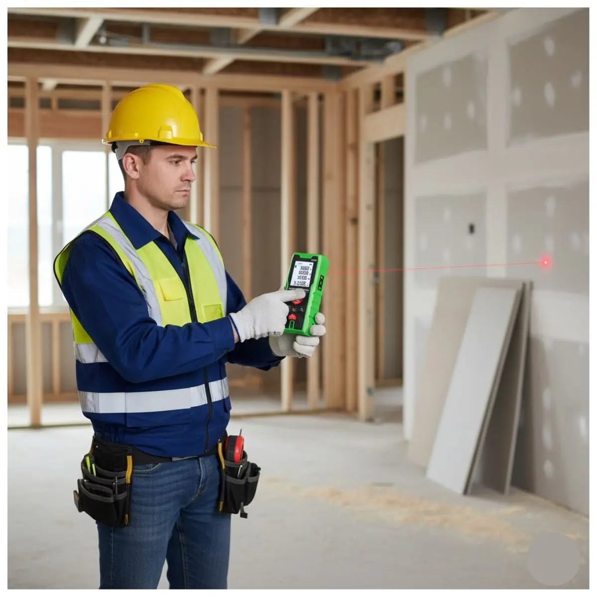 Optimiza tu trabajo con la máxima precisión, este Medidor Láser Digital Profesional 50 M es una herramienta esencial para profesionales de la construcción, diseño y arquitectura. Permite realizar mediciones rápidas y altamente precisas de hasta 50 metros, viene equipado con funciones de cálculo avanzadas que te ahorrarán tiempo como el esfuerzo.