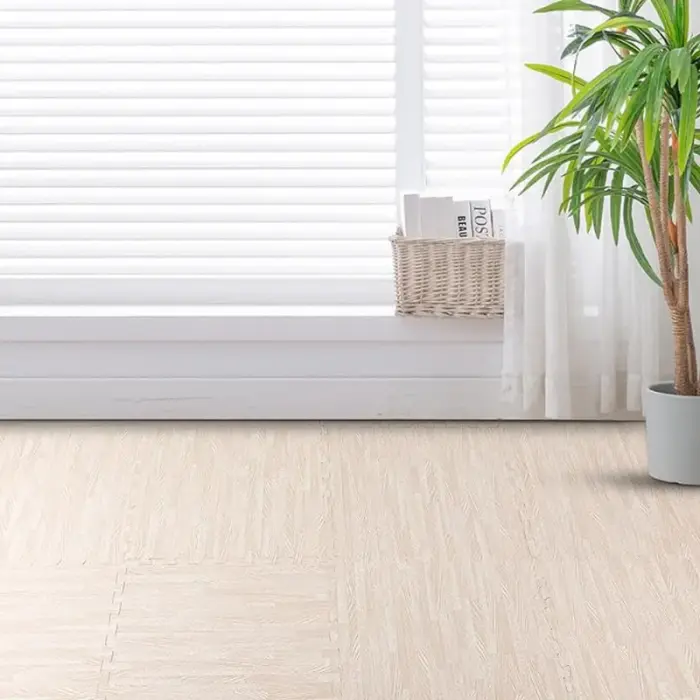 Placa piso de goma símil maderaMedidas: 30 x 30 cmMaterial: EVAColor crudoIncluye bordesPACK X16